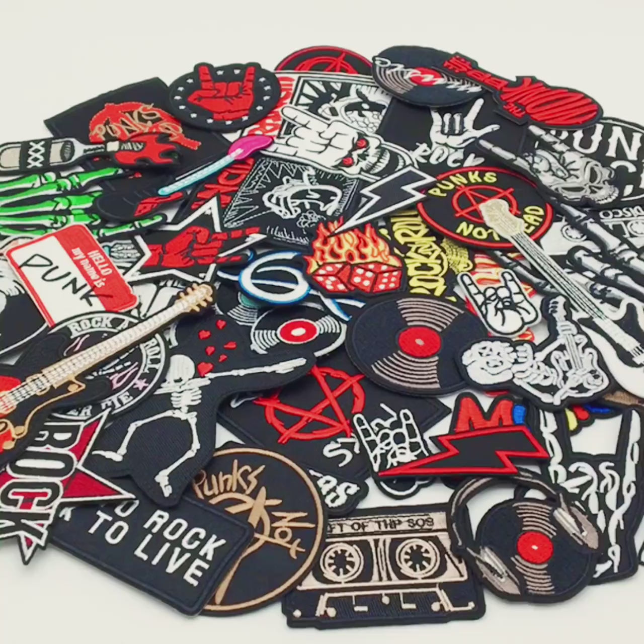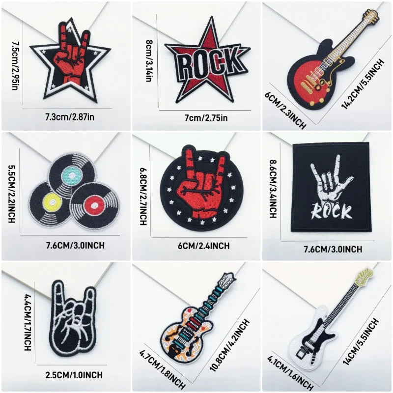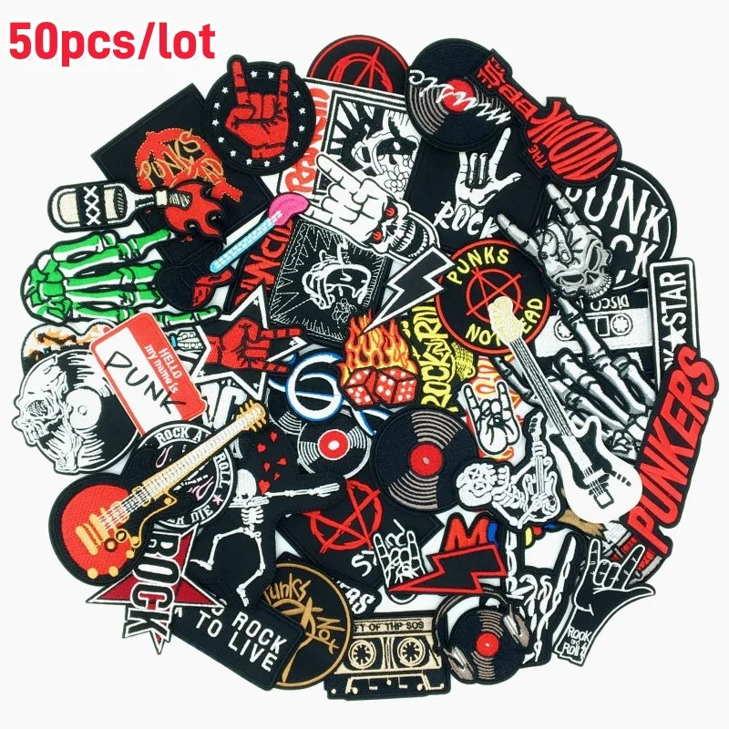 50pcs Iron-On Rock Band Music Patches – Embroidered Punk & Guitar Appliques for DIY Clothing