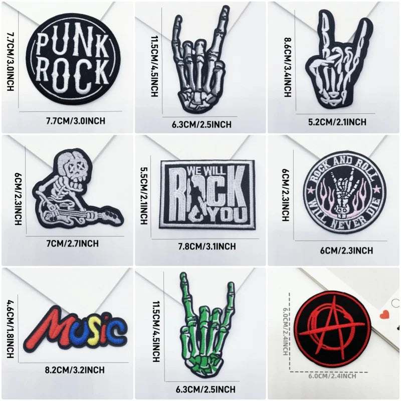 Turn up the volume on your outfits with a 50-piece bundle of embroidered punk & rock band-style patches. From guitars, records and microphones to skulls, flames and “Punks Not Dead” slogans, this pack celebrates music culture with bold attitude.