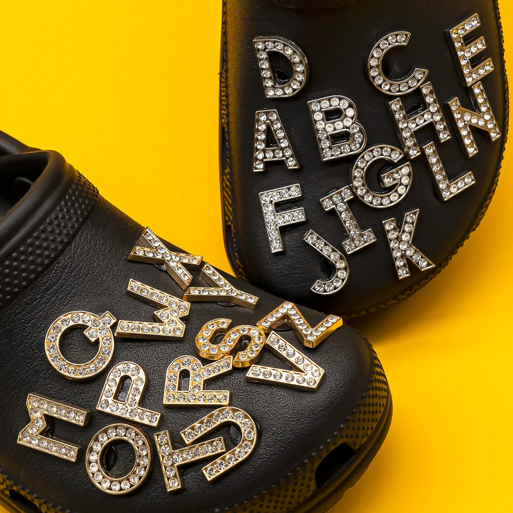 Spell your style with a full alphabet of bling. This deluxe set includes uppercase Aโ€“Z letter charms in mixed gold and silver finishes with sparkling rhinestonesโ€”ready to personalize clogs, charm bands, bags and more.