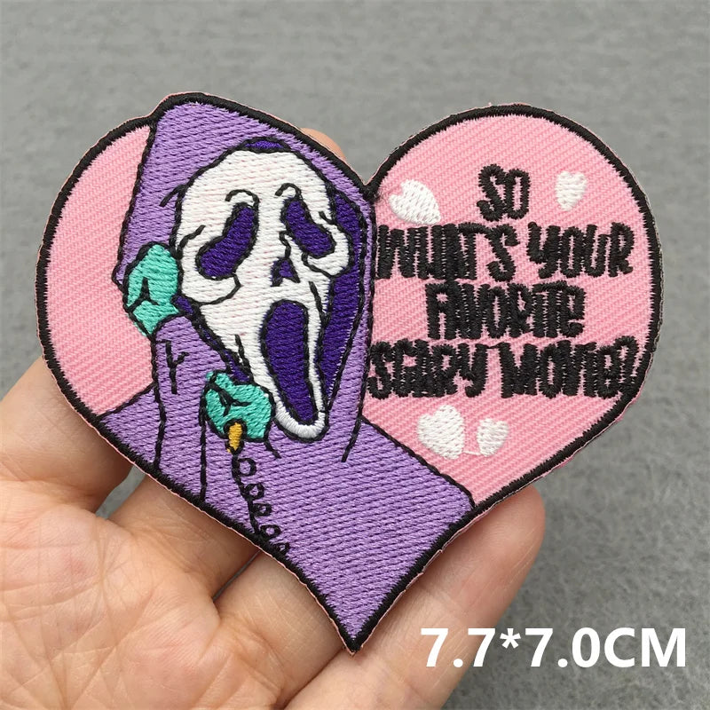 Whether you’re into horror icons, glitchy sarcasm, or edgy slogans like “Choke Me” or “Call Me,” there’s a patch here to match your mood and aesthetic.