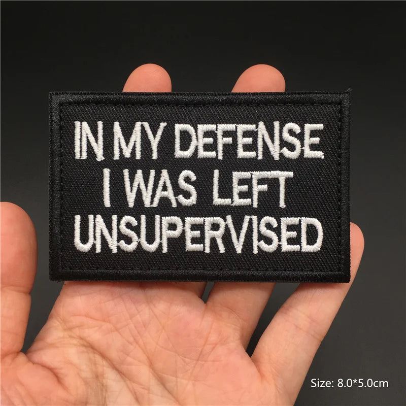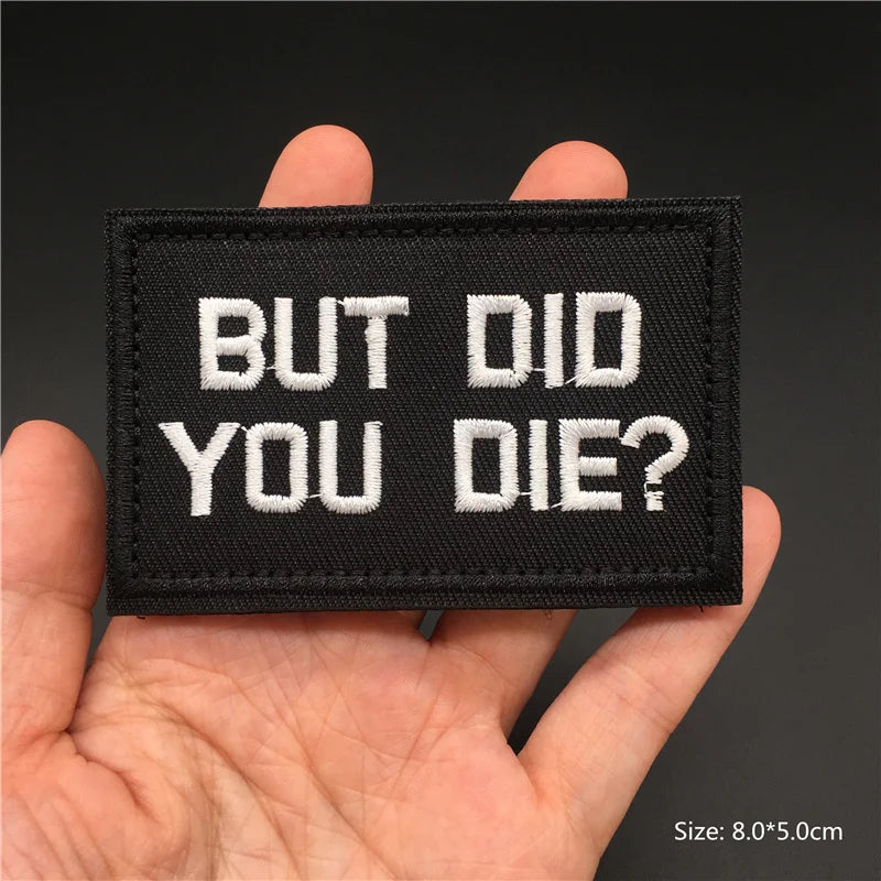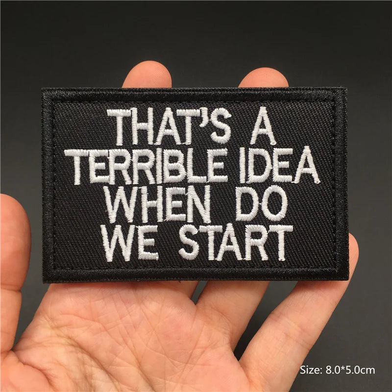 Funny embroidered quote patch with hook & loop backing โ€“ tactical morale badge