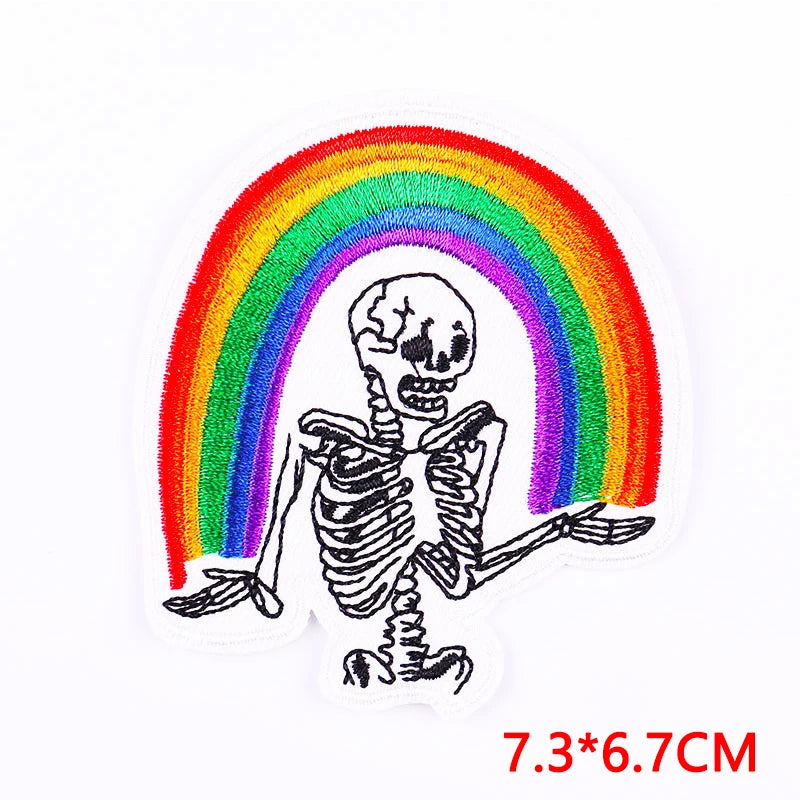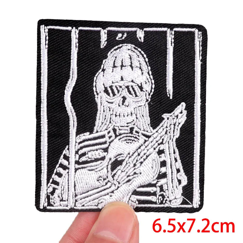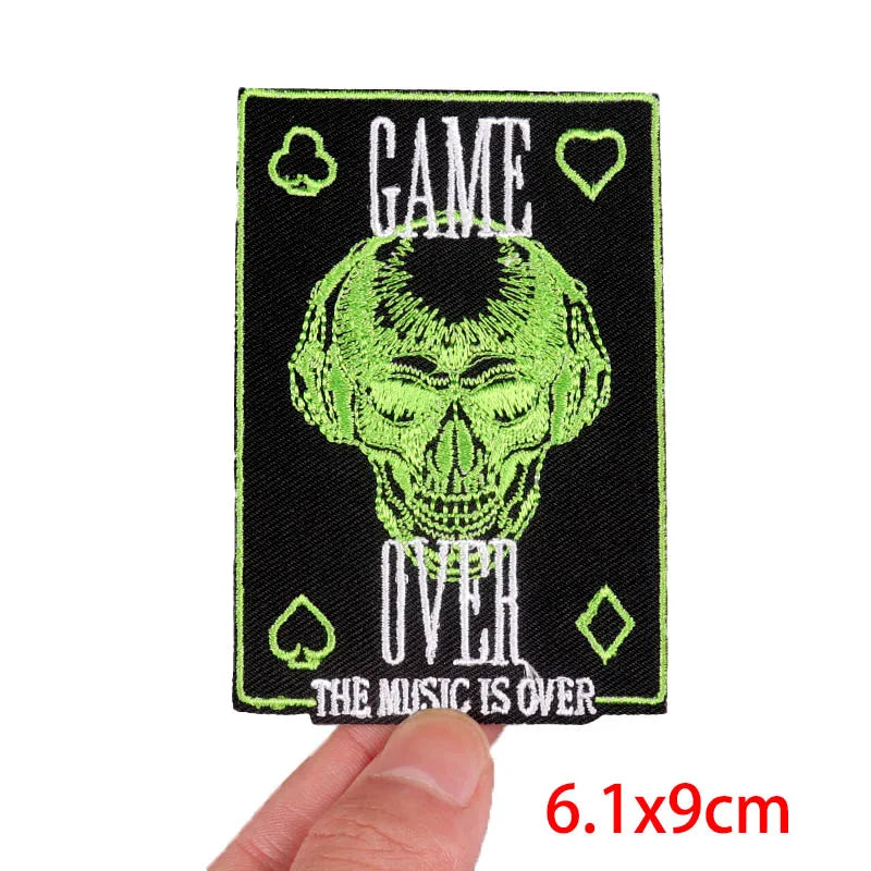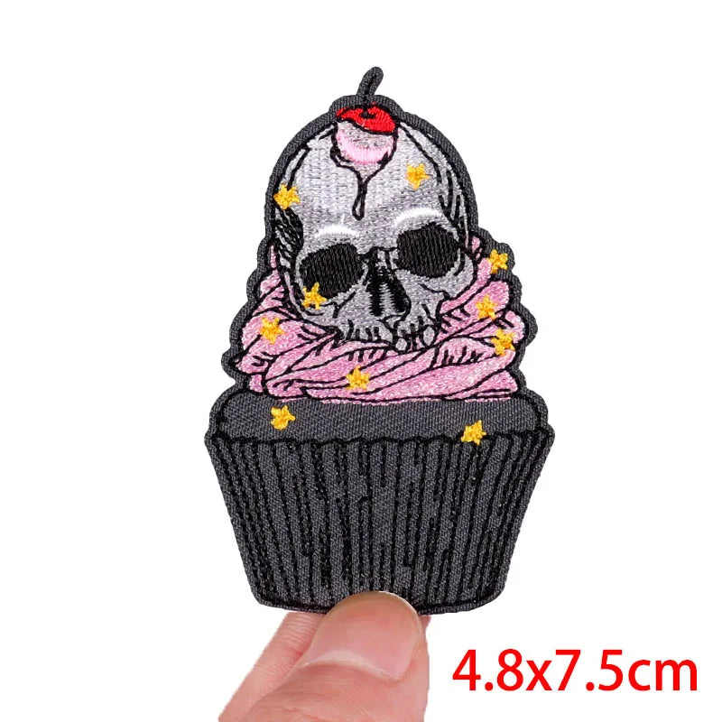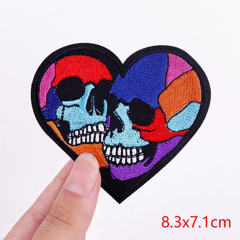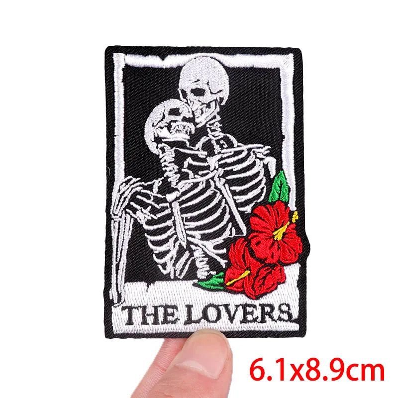 Punk fire skull and tarot card iron-on embroidered patches – gothic DIY designs for clothing and bags