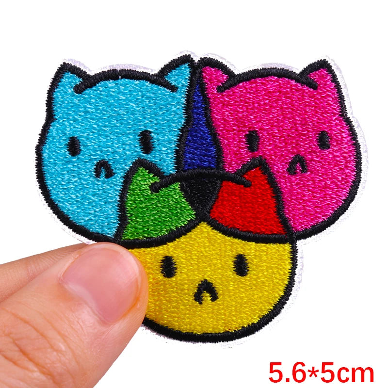 🌈 Rainbow Cat & Unicorn Patch β€” Cartoon Iron-On Embroidery