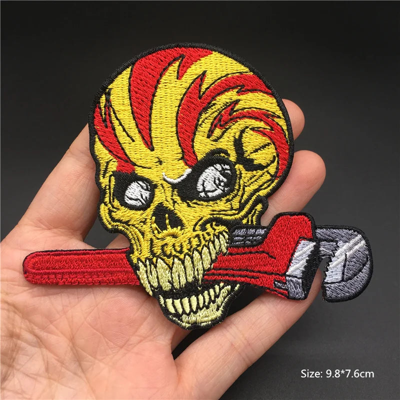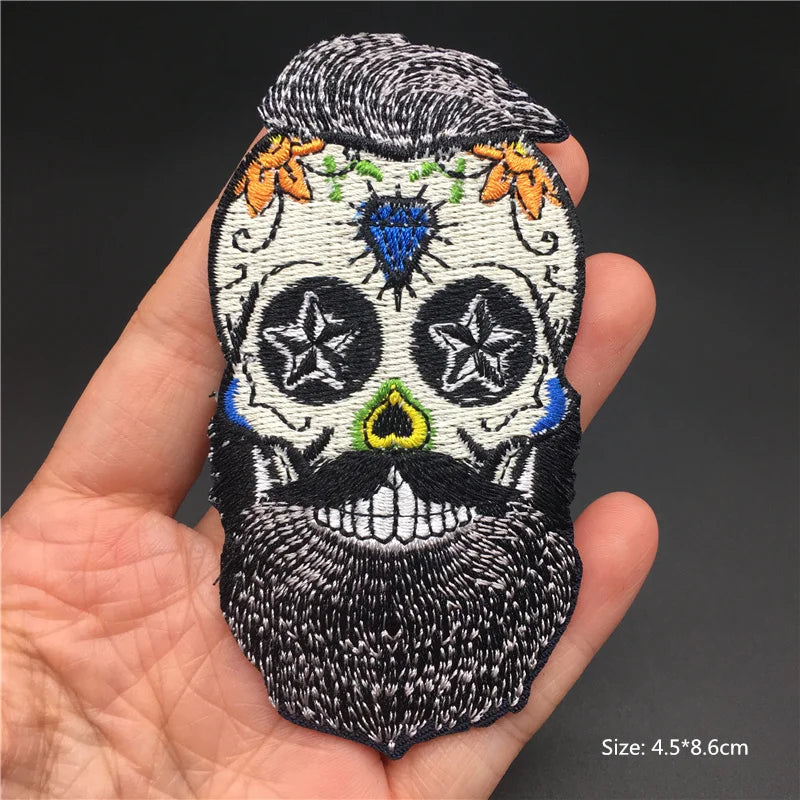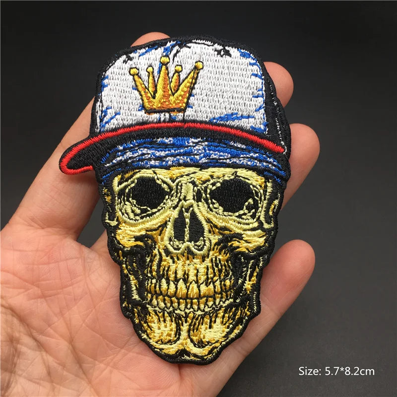 Iron-On Skull Punk Patch – Embroidered Badge for Jackets, Bags & Clothing