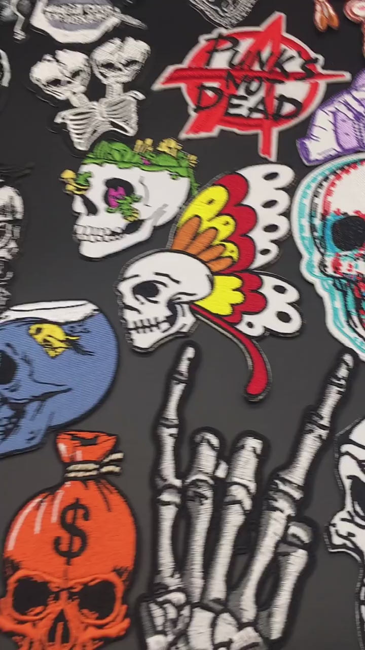video of Iron-On Skull Punk Patch – Embroidered Badge for Jackets, Bags & Clothing