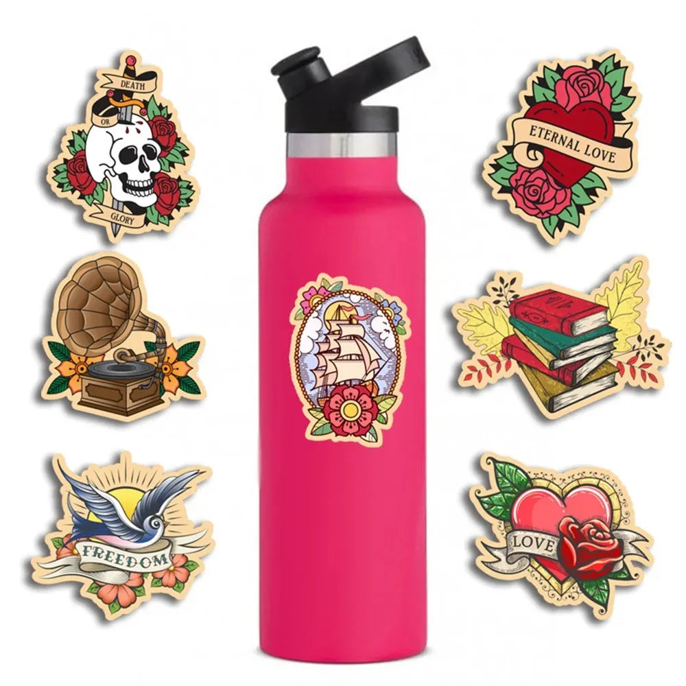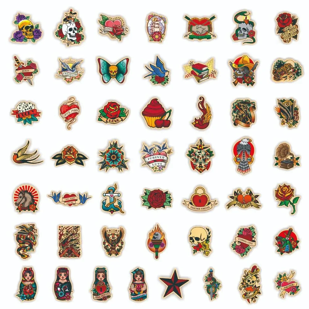 Retro Tattoo Sticker Pack – 10 to 100pcs Waterproof Graffiti Decals for Laptops, Skateboards, Luggage