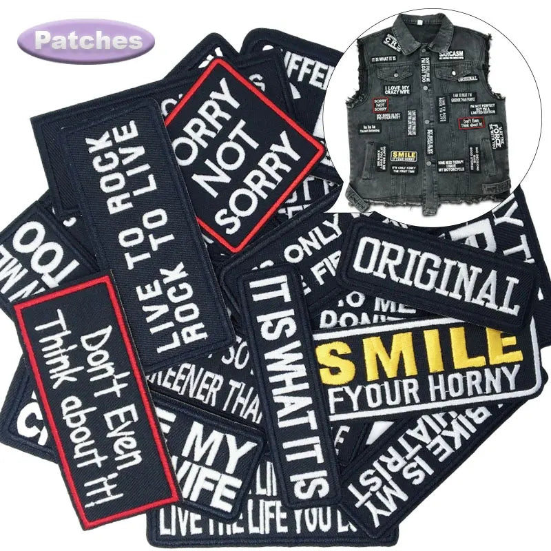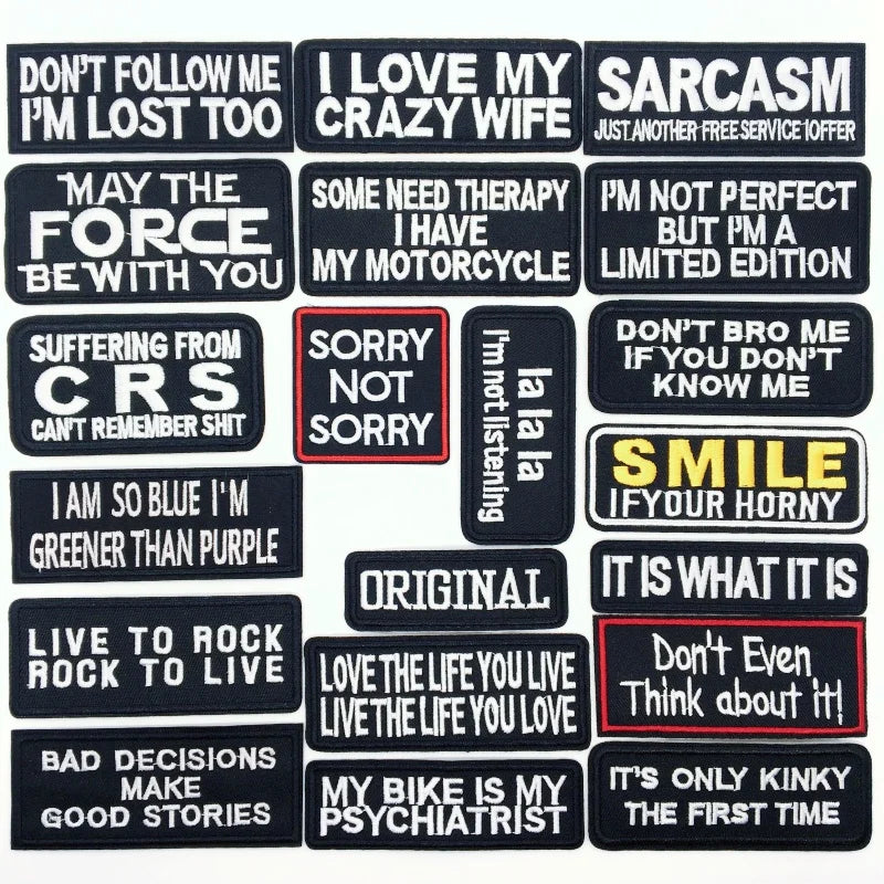 🧵 20pcs Funny Iron-On Text Patch Set — Quote Embroidery