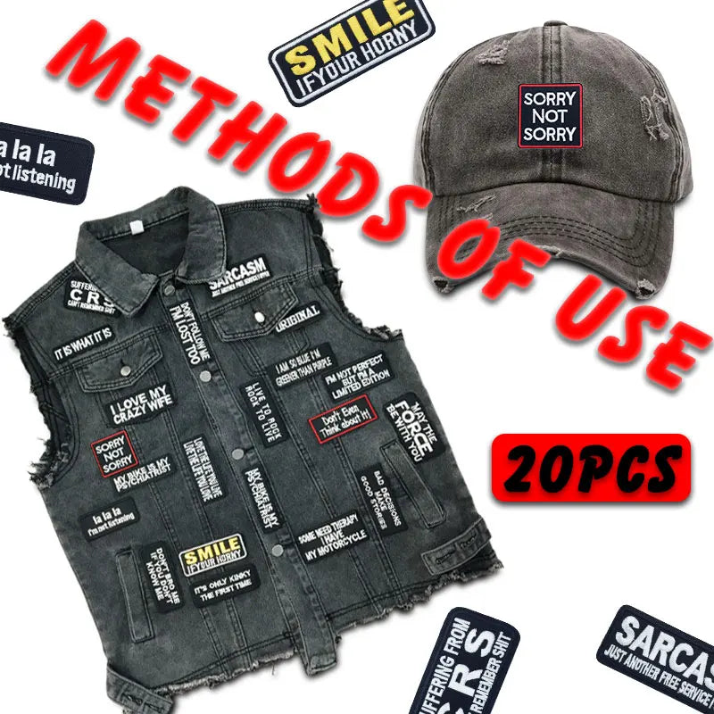 🧵 20pcs Funny Iron-On Text Patches — Say It Loud, Wear It Proud