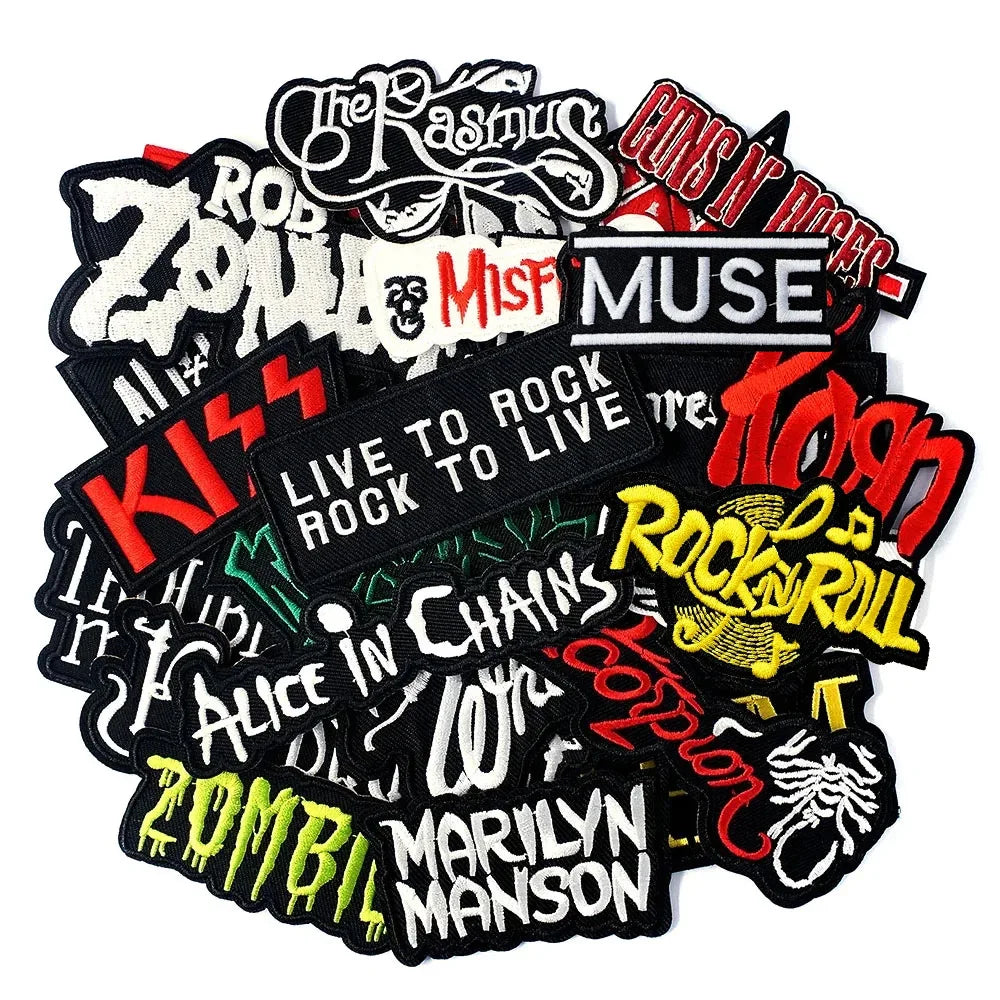 • 25 embroidered patches — mixed rock band designs (assorted)