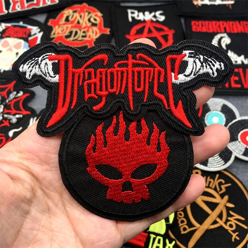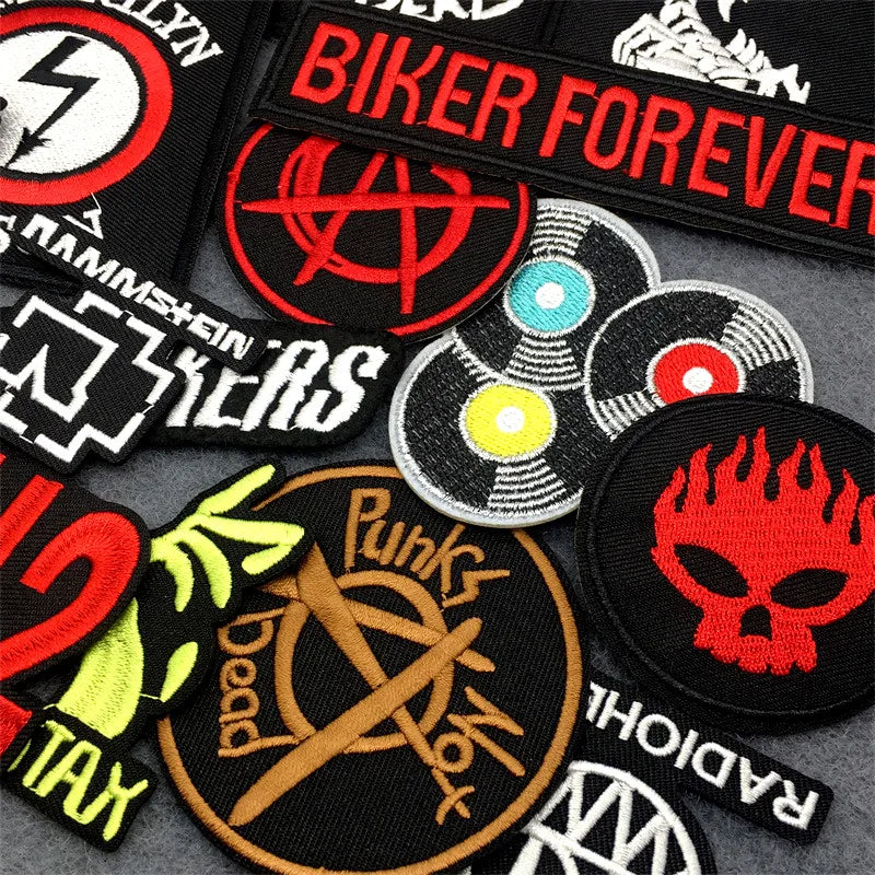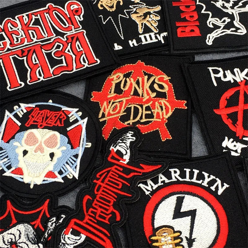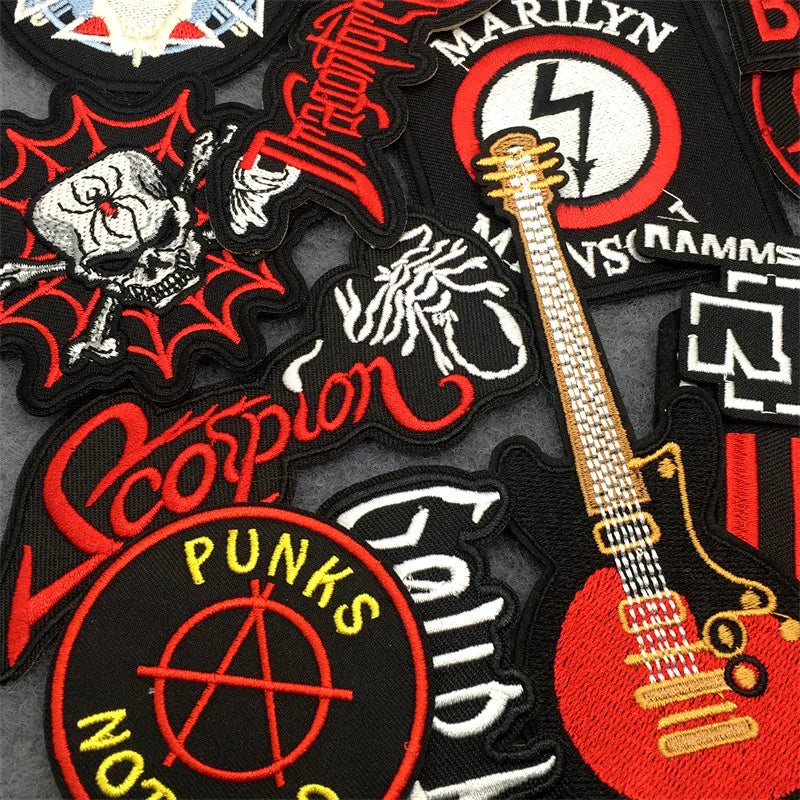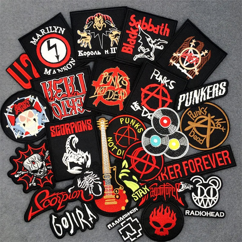 - 25 iron-on embroidered patches — punk, rock & alt-band styles