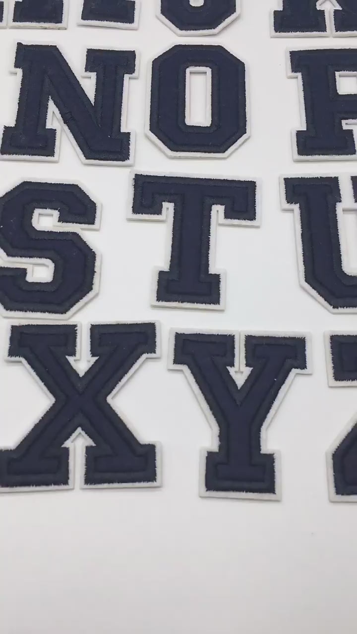 Personalize jackets, denim, backpacks and hats with classic varsity lettering in deep navy blue. Pick your initials or spell out a name—these embroidered letters apply in minutes and hold up to everyday wear.