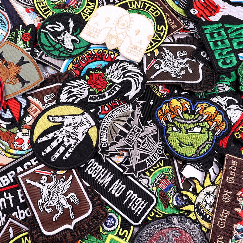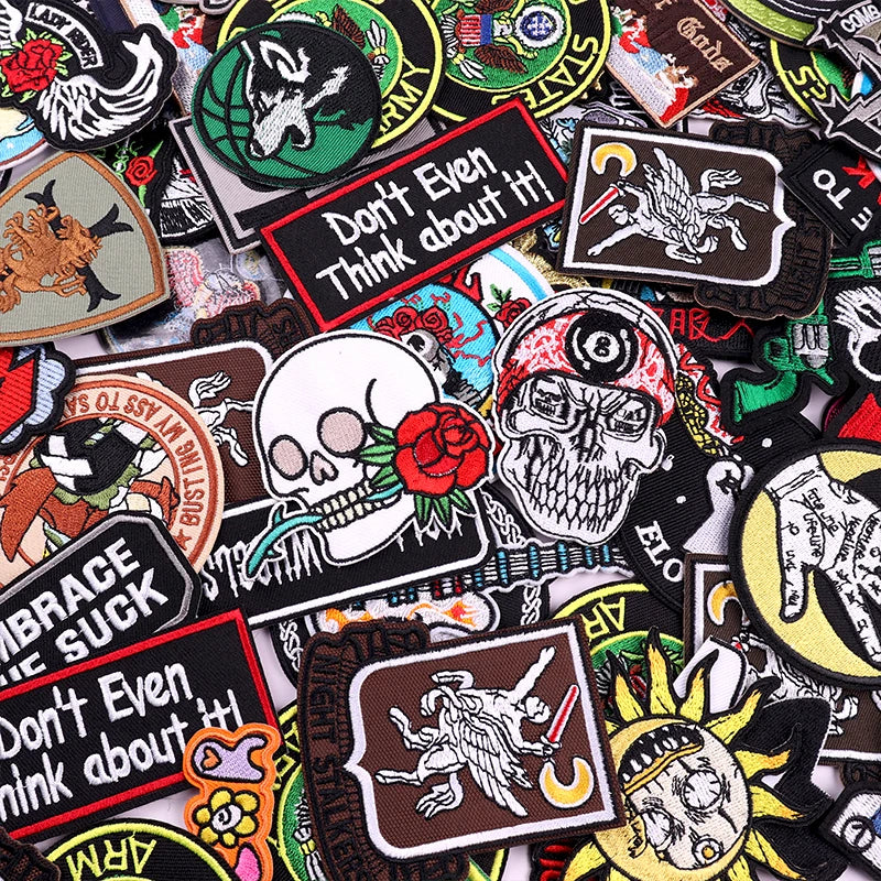 Turn clothing into a statement of rebellion with a random mix of embroidered patches. Expect skulls, punk slogans, military-style crests and bold symbols—perfect for jackets, jeans, backpacks, vests and quick DIY clothing repair with attitude.