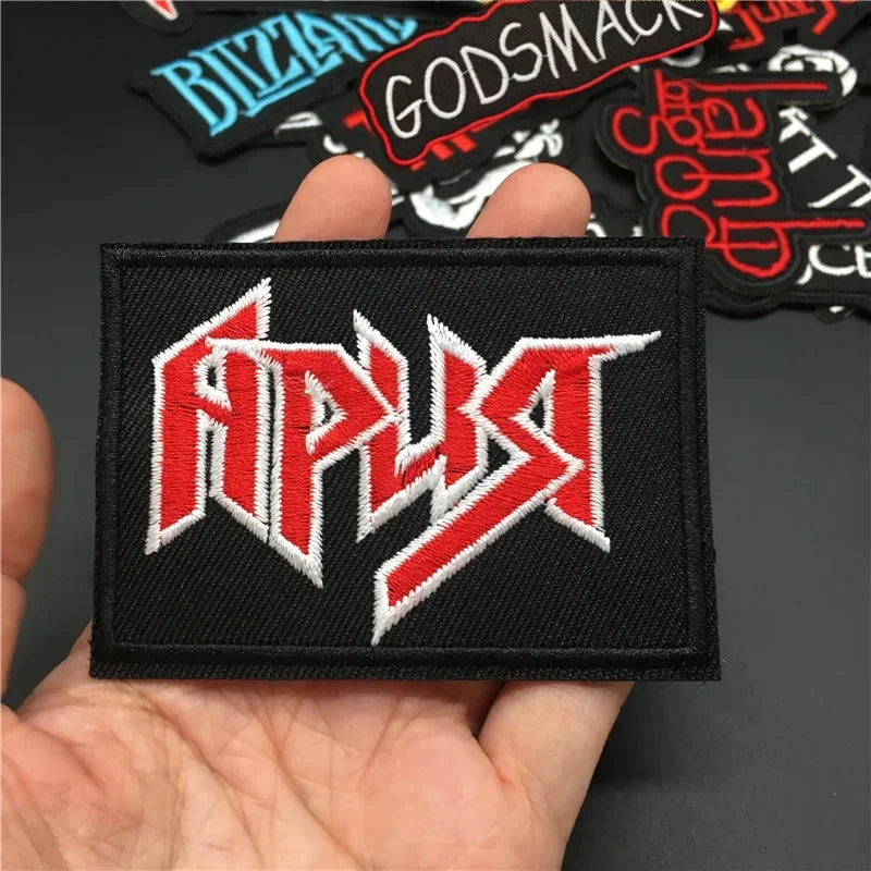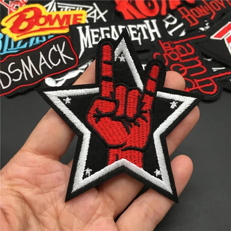 • 25 mixed embroidered patches — band logos & music symbols (designs vary)