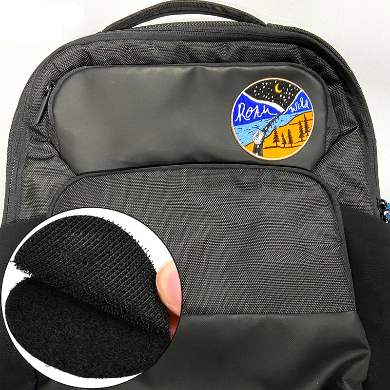 3. Attach LOOP pad to your item (bag/hat/jacket) — loop feels soft when the patch is off.
