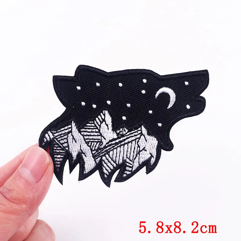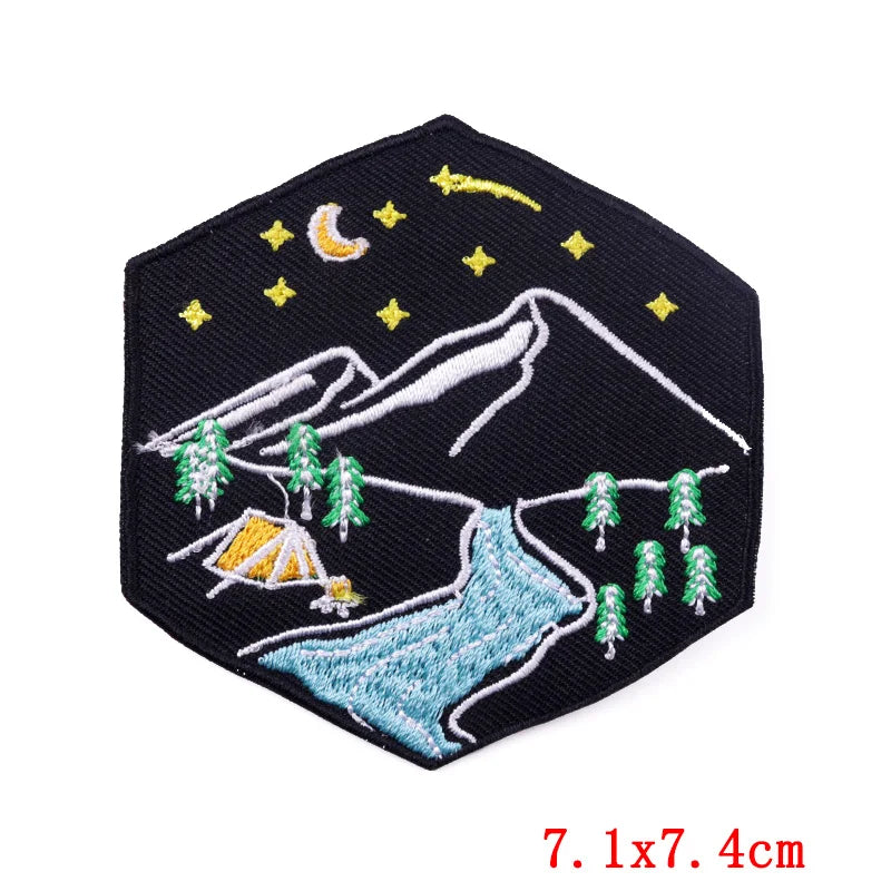 Bring the great outdoors to your wardrobe with bold, scenic embroideryβ€”suns, moons, mountains and campsite vibes for jackets, jeans, totes and backpacks.
