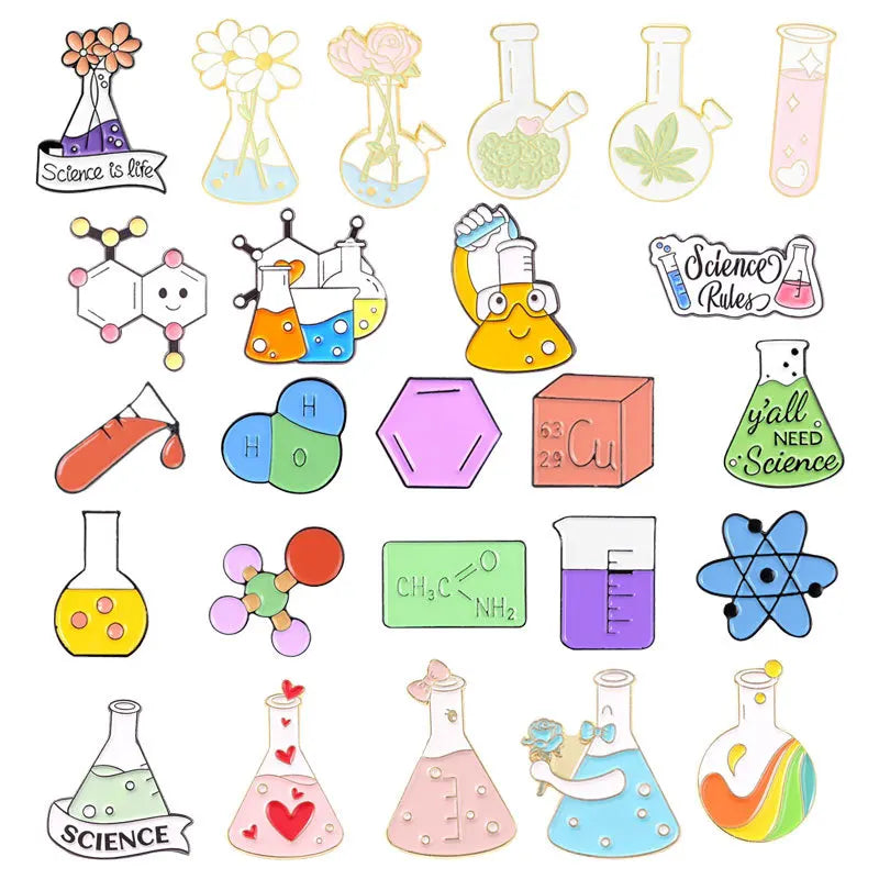 ๐Ÿ”ฌ 10โ€“50pcs Science Lab Enamel Pins โ€” Chemical, Microscope & Beaker Designs